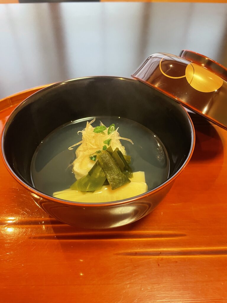 漆塗りのお椀の蓋を外し、そっと両手で持ち上げる。