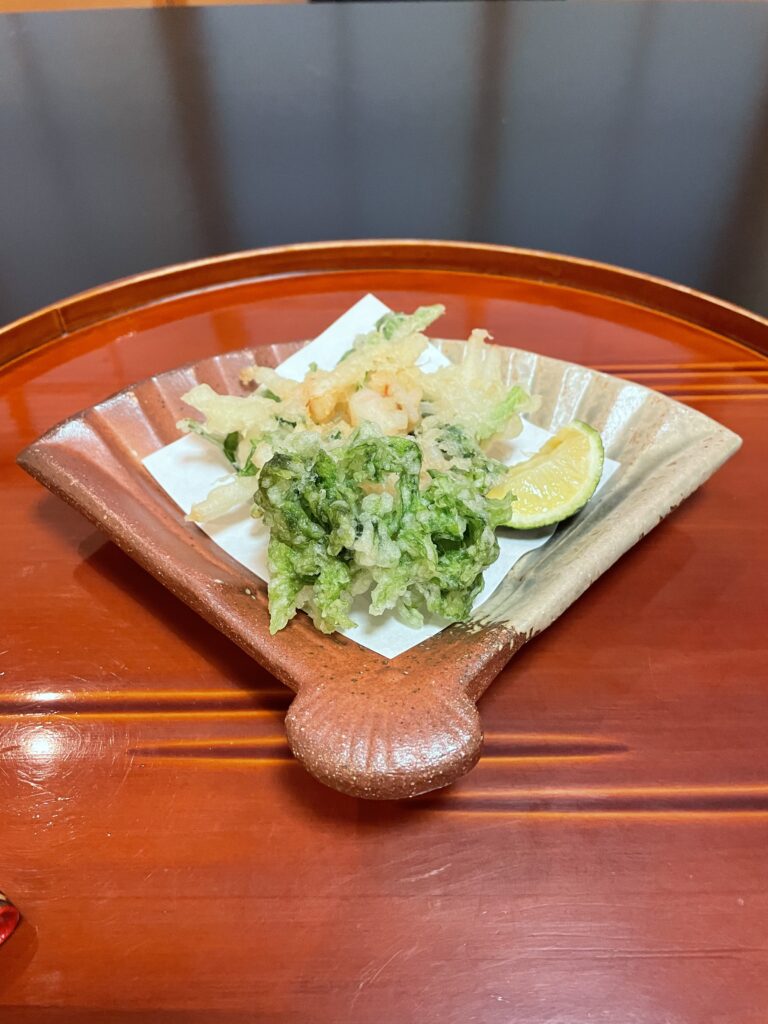 そして、海の香りが広がるあおさの天ぷらを添えました。