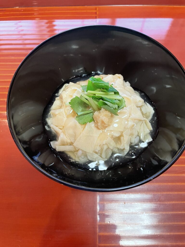 この生姜が、実は名脇役でして。葛あんのまろやかな甘みの中に、生姜のピリッとしたパンチが加わることで、味がぐっと引き締まります。湯葉の優しさと生姜の刺激、この対比が春の終わりの少し気だるい体には心地よく響くと思います。